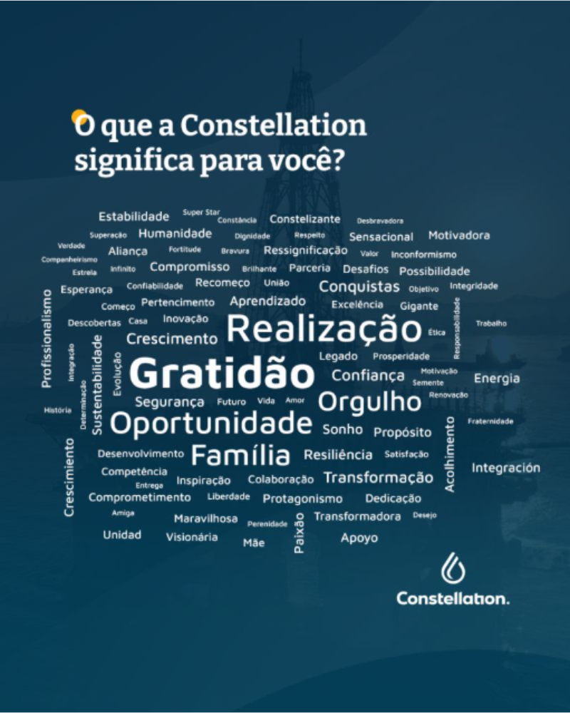No aniversário de 46 anos da companhia, realizamos uma ação interna pedindo aos nossos colaboradores que definissem a Constellation em uma só palavra.